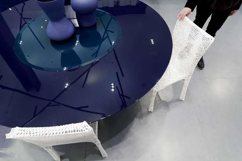 We paired careful geometries with a composite of eco-friendly soy-based epoxy and cotton butcher string. This created a wear-resistant, structurally sound and lightweight material that is aligned with Roche Bobois’ sustainability goals of minimal materials and a long service life.