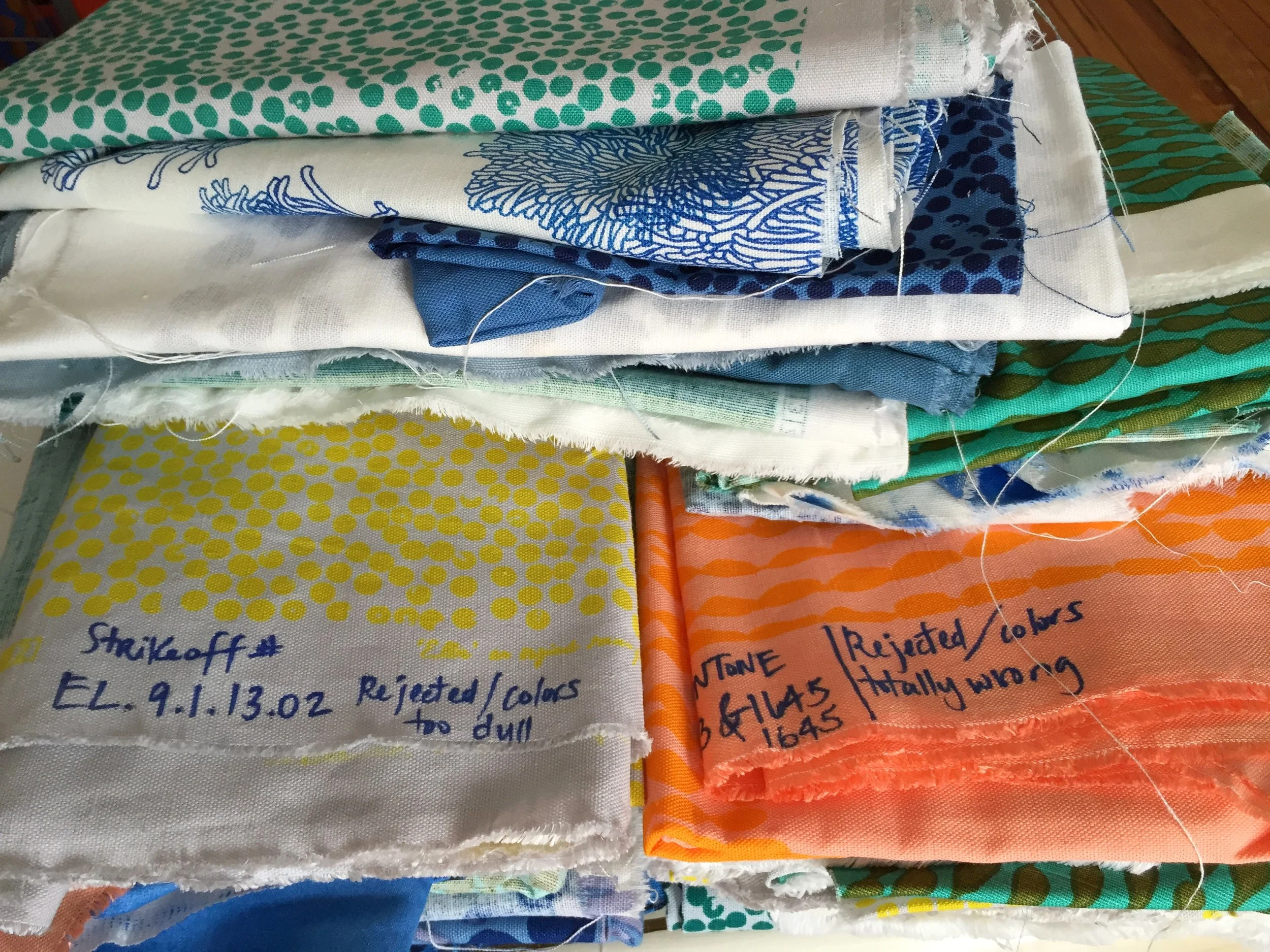 As much of the design process as possible is done by hand, with a brush and India ink. For some patterns, applying the patterns to the fabric involves hand painting the yardage. Other patterns are hand screen printed, creating a more graphic appeal. When Radica first began, all the yardage was printed in my Baltimore studio. Eventually I outgrew the ability to keep up with the demand and partnered with a New England company who has over 75 years experience screen printing on textiles.